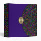 This all purpose binder is designed in the style of a clutch bag. The flap cover of the bag is a colorful terrazzo pattern, mainly dark grays, but sprinkled throughout with flecks of reds, blues and greens. The lower part of the bag, under the flap, is blue violet in color with a slight silk fabric texture. The flap closure is a gold oval curving outward, with a monogram which can be personalized or deleted. On the silk terrazzo print, spreading out from the gold oval to the upper corners, are two bands of blue violet with terracotta edges. This design is repeated on the back cover of the binder, and the spine is the terrazzo print. This binder also comes in terracotta, and forest green.