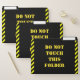 This silly file folder set design features the message "DO NOT TOUCH THIS FOLDER". It also features yellow and black colored warning stripes. [~Z0000265]