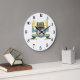 A silly frog design with numbers that have flies on them. The frog tongue is extended visually by the hands on the clock as he tries to catch the flies on each hour. will work on round or square though the round is more suited for the circular pattern.