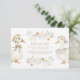 Invite loved ones to a whimsical first birthday party with this soft and storybook-inspired design. Featuring two adorable silly geese dressed in charming vintage outfits, surrounded by delicate orange and blue wildflowers, this invitation blends a sweet nostalgic mood with a modern neutral palette. Perfect for a spring or nature-themed baby celebration with a touch of coquette and cottagecore charm.