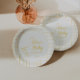 I ordered personalized baby shower plates and I loved them and they were delivered on time they were personalized with thanks for showering our little peanut. The printing turned out good but edge of plates had like tears around the edges I would recommend them to any one having a baby shower or party