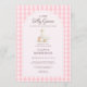 Pink gingham baby shower invitation with a playful silly goose theme. Designed to celebrate a sweet baby girl with a charming, whimsical look. Ideal for baby showers, sprinkle parties, and brunch style celebrations. Editable text. Print-ready invitation design.