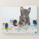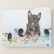 Silly Husky puppy that looks like he got into a bunch of paint cans and made himself a mess.