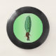 This Wham-O frisbee has a silly man wearing a brown suit and tie with a big green pickle head with a face on a light green background.