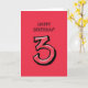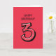 Silly Number 3 red Birthday Card