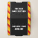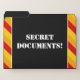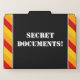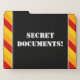 This silly file folder set design features the message "SECRET DOCUMENTS!". The background features eye-catching red, orange and yellow colored stripes. [~Z0000265]