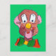 Silly Willy Postcard. This bright green postcard is decorated with a portrait of "Silly Willy" the Clown with his pink hair and yellow nose. This postcard would be excellent for one who loves Clowns and Clowning.
