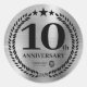 Gold brushed metallic style 10th-anniversary sticker with the business logo. Commemorative design with a laurel branch and stars. The logo can be changed for text by clicking the button to edit the design.