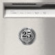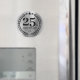 Silver brushed metallic style 25th-anniversary magnet with a business logo. Ideal for the employees or as promotional supplies for customers. Commemorative design with a laurel branch and stars. The logo can be changed for text by clicking the button to edit the design.