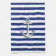 A nautical chrome like anchor design graphic decor on blue stripes. A modern nautical gift sure to make an impression on, or off the boat.