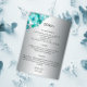 A shabby-chic, yet very elegant wedding enclosure card for all your important details for the guests to know. The design features a metallic silver gradient base, with a beautiful white and aqua rose arrangement in the top left-hand corner. All of the actual details in each paragraph can be easily personalized to suit on the template. The back of the card is a plain silver gradient background, with a smaller version of the aqua rose situated at the bottom of the card with your website address sitting on top (please note, if this line is not needed it can be easily removed by just deleting this line in the Personalize menu).