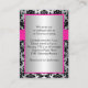 ** Please note that the ribbon and jewels are works of art, and are not real. This hot pink, silver, and black damask enclosure card matches the Bat Mitzvah invitation and other items shown below. You can remove the word "reception" if you need it to be a directions card or something else. You can contact me if you would like a similarly designed word instead. If there are any other matching items you require, please email niteowlstudio@gmail.com.