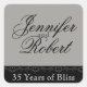 This beautiful design, called Silver and Black Heart on my Sleeve, would be a dramatic way to set the tone for your modern but elegant wedding anniversary party or event. The background is silver and has a black border on the left side. Setting the border apart is a silver heart vine effect.