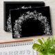 Silver circles, stars and dots wreath on the front and back flap accent these black envelopes. Your FREE return address is printed on the back flap. Fits a 5" x 7" invitation or change to the size you need when ordering.
