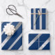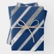 Silver and Blue Diagonal Stripes Pattern Wrapping Paper Sheets