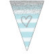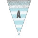 Banner with "welcome baby" wordings, faux silver glitter design and blue stripes pattern background.