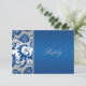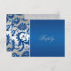 This royal blue and silver gray floral damask reply card matches the wedding invitation shown below. It is fully customizable, including the paper type. If you require any other items in this design, please email your request to niteowlstudio@gmail.com. Existing matching items are shown below.