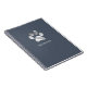 Luxurious silver paw print logo on an elegant dusty blue background. This spiral notebook has a line of customisable text to personalise any way you like. Perfect for any pet related business or animal lover.