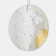 Lightweight, smooth, pure white ornament with nice sheen. Perfect size to be seen from across the room ... and to attract closer inspection! Price was great for ordering enough for the whole family! Clear, bold black design just as requested. Matches the order exactly. Just so nice!