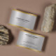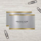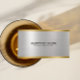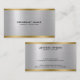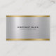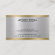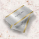 Elegant shiny slick metallic silver texture print, stainless steel look with gold border accents, business card template—customizable typography in black.