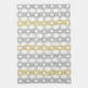 An elegant pattern of silver and gold geometric shapes, linked in a series of linear, lace streamers.