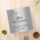 Luxury, glam, elegant silver foil wedding album binder with gold floral swirls.