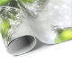 Glamorous Christmas wrapping paper with beautiful green glittery Christmas ornaments, white sparkling lights, shiny silver pearls and tinsel.