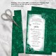 Design your own whimsical DIY scroll invitations with a stunning emerald green and silver color scheme using this simple-to-edit template. Just trim along the adjustable guide lines, then roll each invitation with your favorite ribbon, wooden dowels, or leave them unrolled for a charming medieval or fairytale style presentation. This unique design features original watercolor artwork by Raphaela Wilson, including lush emerald green roses, sparkling faux silver glitter butterfly confetti, an ornate vintage crown, and an intricate filigree border.