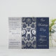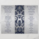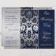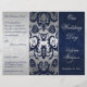 This elegant silver gray and navy blue damask wedding program folds down the center. If you need any help customizing this with your own information, or if you have any requests, please email niteowlstudio@gmail.com. ***PLEASE NOTE that if you upgrade to the more expensive paper, that it is a light cardstock that does not fold well.
