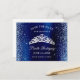 An elegant silver and blue themed Quinceanera save the date postcard. Please note, foil and glitter details are simulated.