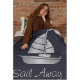 A large silver sailboat in the center of the blanket with the quote Sail Away