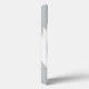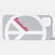 A silver colored case featuring a large white peace sign and custom name in bright pink.