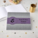 A modern and elegant wedding guest book for your big day. The design features a silver background with the bride and groom's name in a purple border. The monogram initial, bride and groom's name, and the wedding date can all be personalized.