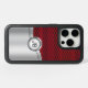 A custom protective case with masculine appeal, this design features a red mesh pattern with silver faux metallic accents. Edit the sample monogram with your desired initials.