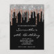Silver and Rose Gold Glitter Drips Black Birthday Postcard