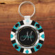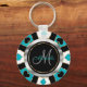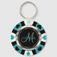 Silver and Turquoise Poker Chip Design - Monogram Keychain