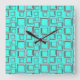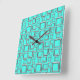 Silver and Turquoise Retro Pattern Square Clock