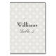 Featuring a Damask Print Pattern, this silver and white tablecard features a template for your name and table number. Customize the font using a variety of colors and text styles. Place your order today!