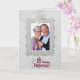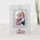 Classic elegance for a 25th wedding anniversary with tone on tone silver gray background and matching border with bow accent. Customize with your photo for invitation, save the date announcement or congratulations. Card front could be added to memory album too after the date as a keepsake.