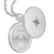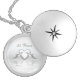 Necklace with my silver-colored image of two dolphins and a heart on shining waters. Customizable text says "25 Years".
