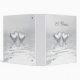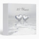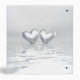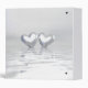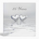 A silver-colored 3d scene with 2 silver hearts floating on water. Customizable text says "25 Years".