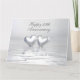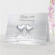 Bigger size card with my silver colored 3d scene of 2 silver hearts floating on water. Customizable text says "Happy 25th anniversary" with verse inside.