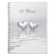 Notebook with my silver colored artwork of 2 silver hearts floating on water. Customizable text says "25 Years".