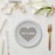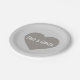 This paper plate features a shapely solid silver heart overlaid by template text for the names of the bride & groom celebrating 25 years of marriage. Personalize font style, color, and size. Great silver anniversary gift or wedding or anniversary tableware.
