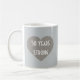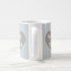 This mug features two shapely silver hearts. One heart contains a text template for the names of the bride and groom. The other heart contains a text template with the words, "25 Years Strong." The silver hearts mug is a perfect 25th wedding anniversary gift or party favor.