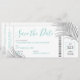Silver Aqua Palm Tree Boarding Pass Save Date Card
