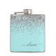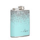 Silver Aqua Teal Blue Girly Glitter Monogram Flask
