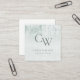 Silver Aqua Teal Brushed Metallic Monogram Initial Square Business Card