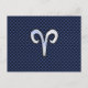 Silver Aries Zodiac Sign Blue Carbon Fiber Print Postcard