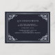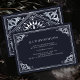 Set the stage for an elegant event with this wedding accommodation card. This tarot-inspired design features an Art Nouveau frame in silver against a navy blue background—perfect for a love story full of magic. Please note that the silver on these cards is NOT real foil and is printed in flat colors.
